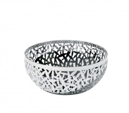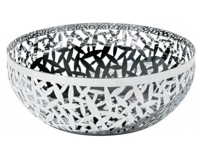 Rund fruktkorg i 18/10 rostfritt stål, spegel polerad, med kant dekorerad med laserskärning. Spegel polerad. “CACTUS!” dekoration har funnits sedan 2000 i flera olika brickor, korgar och föremål för köket.