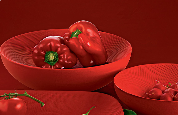Fördubbla den lätta och eleganta dubbelväggiga skålen. Skålens granuleringsförbättrade yta förstärks ytterligare av färgen som skapar en unik plasteffekt.