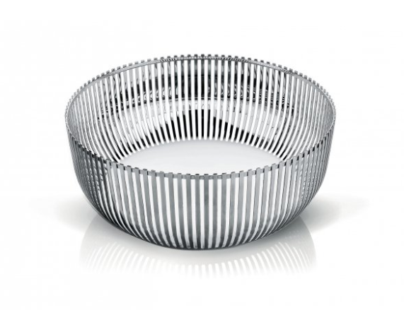 Frukthållaren, designad av Pierre Charpin, å andra sidan, vars användning är så tydlig, är en väsentlig del av vårt inhemska landskap både i köket och i vardagsrummet, en närvaro som påminner oss om en gammal, föreindustriell förflutna, som kommer tillbaka till de gamla galleribacken från 1700- och 1800-talet.