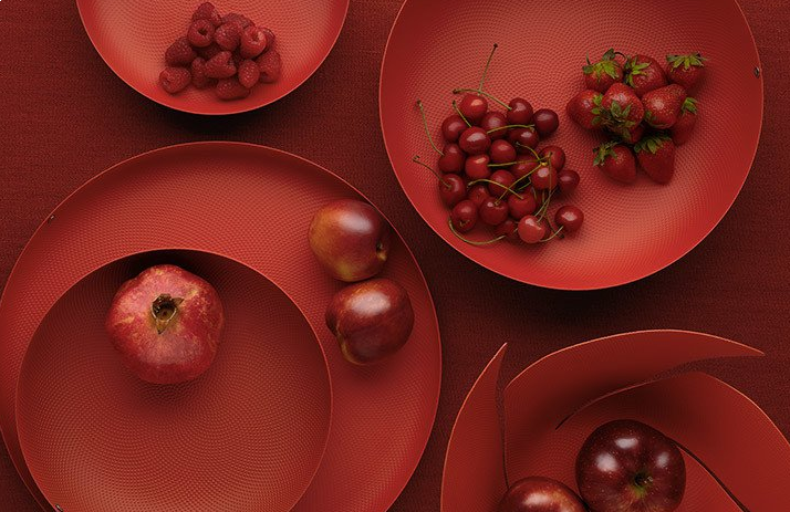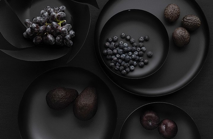 Granulering är en specifik yta som appliceras på metallytan, som tolkar en gammal guldsmidsteknik med en industriell twist. Arrangemanget av granulerna följer en geometrisk ordning som genereras av Fibonacci-sekvensen, uppkallad efter den italienska matematikern som identifierade den numeriska koden bakom Golden Ratio, en av huvudprinciperna som styr former i naturen. Denna runda korg berikas av granuleringen och förstärks ytterligare av färgen svart.