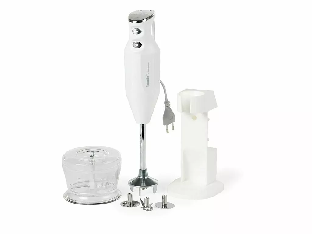 bamix® Deluxe är Mono-serien i en lyxig upplaga. Här får du alla de goda egenskaperna från bamix® Mono- serien kryddat med en starkare motor och extra tillbehör i form av ett DeLuxe-stativ, så du har alltid bamix® lättillgänglig, samt en kvarn som maler nötter, mandlar, örter , korn, choklad, ost, socker för strösocker, kryddor, kaffe, vitlök och råa grönsaker.
