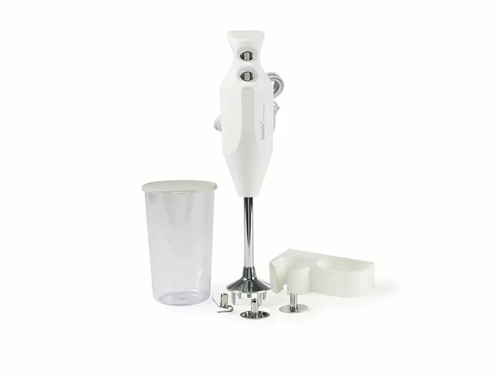 bamix® Mono handblandare är en sofistikerad grej för köket i en klassisk design och vilket gör utmanande uppgifter till en lek. Det är både en matberedare, mixer och handblandare. Med bamix® Mono har du en maskin som utför de flesta uppgifter i köket. Med bamix®s kraftfulla motor, stora mångsidighet och schweiziska precision är du säker på den bästa upplevelsen varje gång. bamix® är själva symbolen för precision och kvalitet. bamix® Mono levereras med väggfäste, 600 ml. blandningskopp med lock och de 3 standardverktygen.