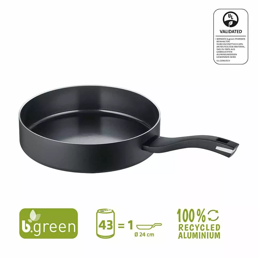 Berndes b.green-serien består av stekepanner og gryter laget av aluminium fra resirkulerte bokser. Disse produktene er ikke bare bra for miljøet med deres bærekraftige profil, de er også av høy kvalitet og kan brukes på alle varmekilder.