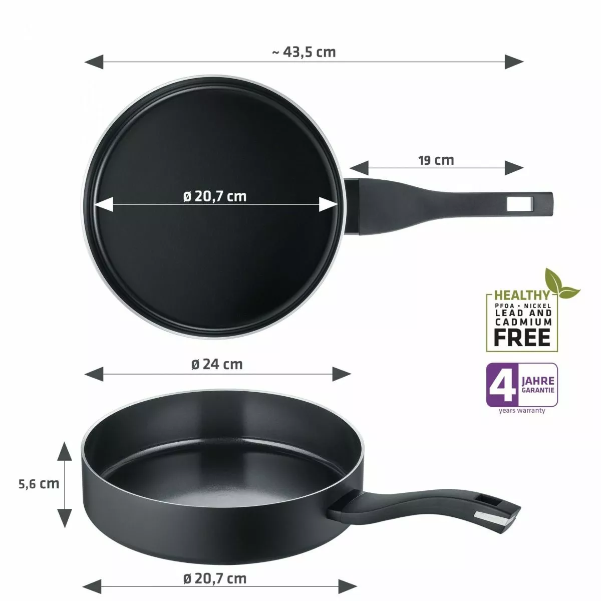 Berndes 24 cm sauterpanne med glasslokk i b.green-serien. Laget av 100 % resirkulert aluminium fra 43 brukte bokser. Pannen har keramisk nonstick-belegg med god varmefordeling. Tåler steketemperatur opptil 400 grader. Ergonomisk håndtak av resirkulert bakelitt med dobbeltskrue, som gir trygg og komfortabel håndtering. Pannen kan brukes på alle varmekilder. Glasslokk med praktisk damphull og tett silikonkant.