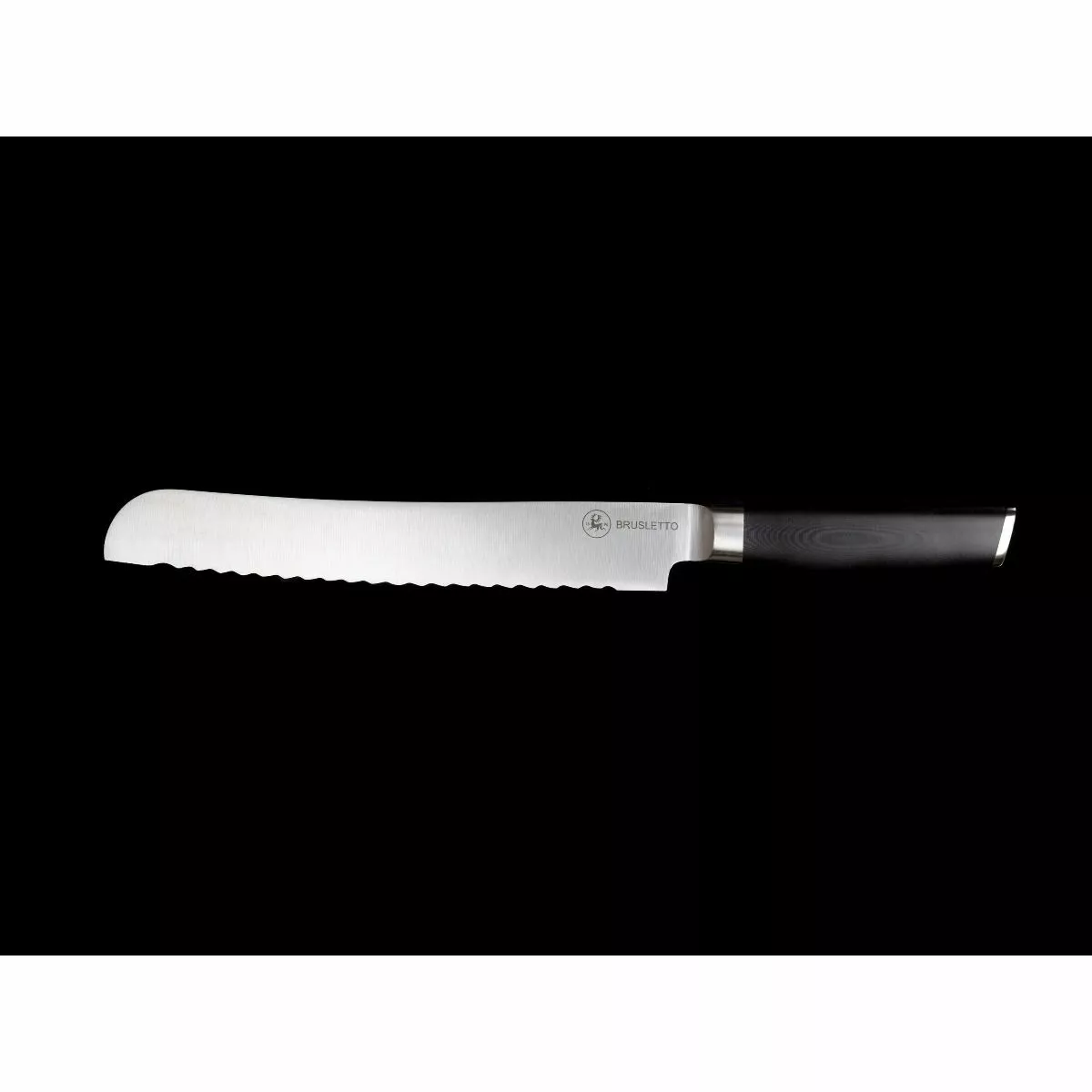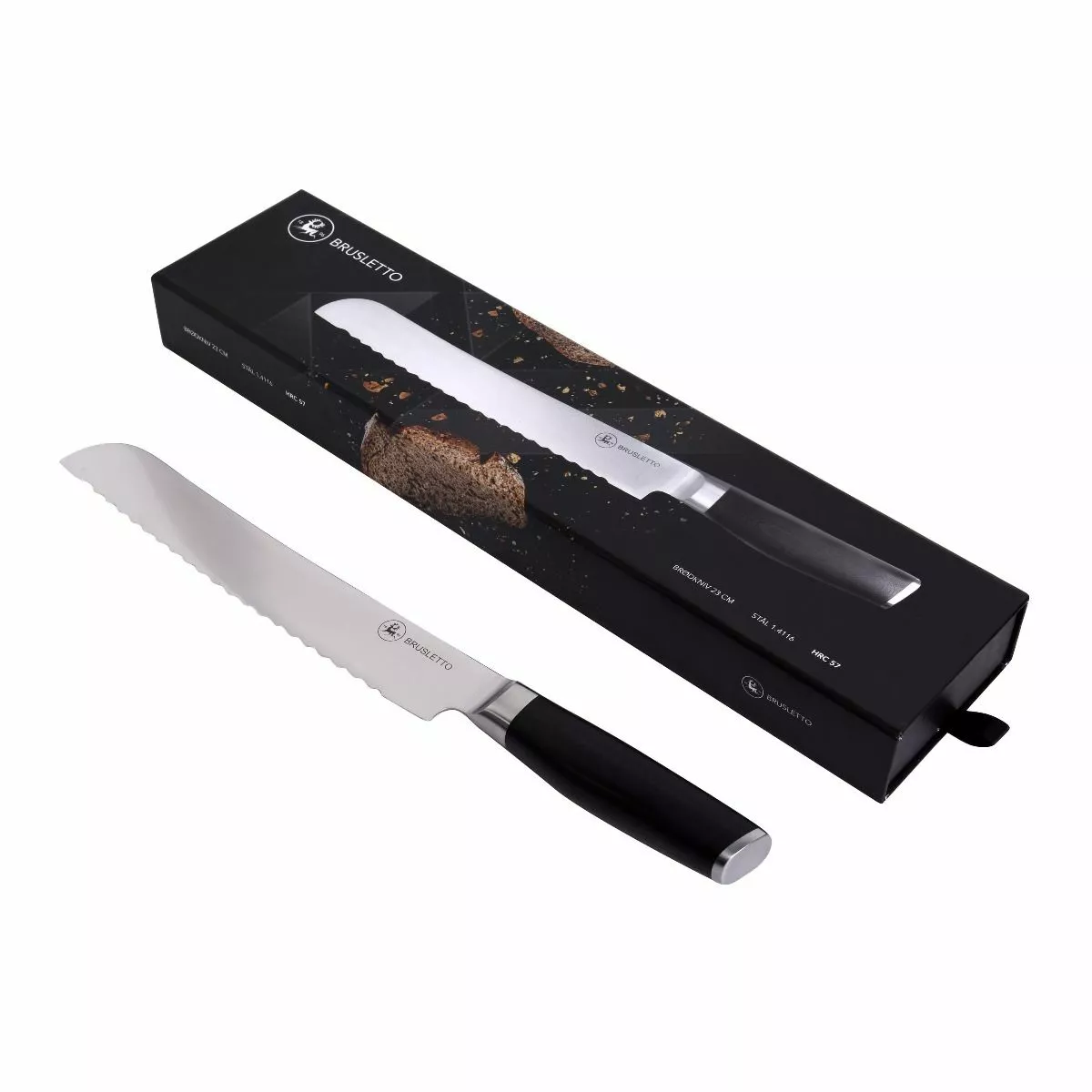 En god brødkniv er et must i et av verdens mest brødspisende land. Stødig og skarp med tagger. Skjærer rent og godt gjennom all slags brød, også rykende ferskt bakverk. Knivserien er produsert i tysk stålkvalitetmed en hardhet på 57+/-2 rockwell, – en skikkelig kniv med andre ord. Håndtaket er av en høykvalitets kompositt med sofistikert design som ligger godt i hånden. Dette er stødige og gode kniver du vil ha glede av i mange år. Dersom du ønsker å skjerpe kniven etter en tid, anbefaler vi en vinkel på 15° med skjerpestål. Mat med høyt salt og syrenivå vil sløve ned stålkniver. Skyll derfor kniven like etter bruk. Kniven tåler oppvaskmaskin, men vi anbefaler å rengjøre for hånd for å bevare knivens gode egenskaper. Oppvaskmaskin vil over tid gjøre stålkniver sløve og mattes ned. Ved rengjøring for hånd brukes lett såpevann og oppvaskbørste. Tørk av overflødig fukt med en tørr klut.