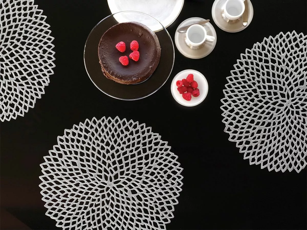 Dahlia utvider Chilewichs flotte sortiment med bordbrikker. Disse bordbrikkene fremhever maten og setter en helt spesiell stemning på bordet.