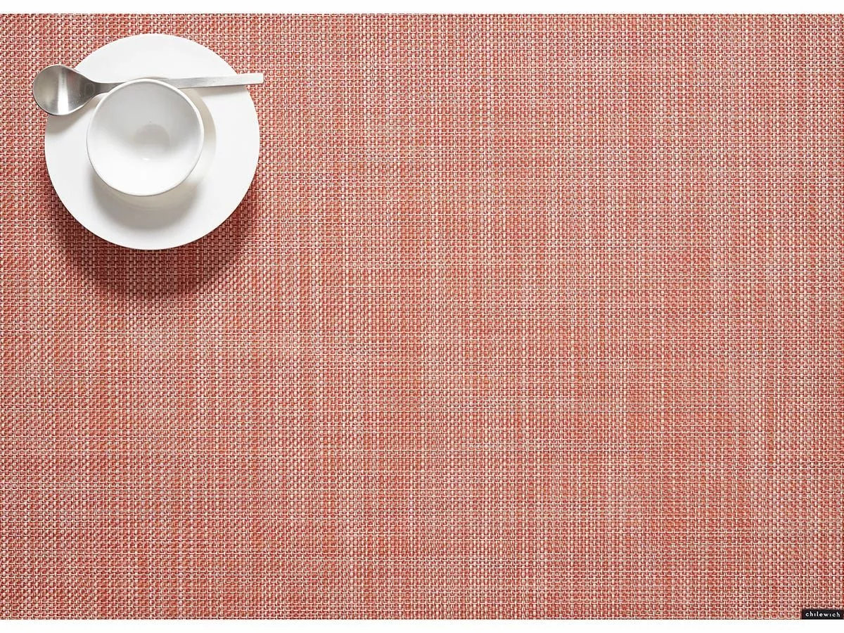 Mini Basketweave är Chilewichs signatur Basketweave i halvtid. Istället för fyra garn över fyra är Mini Basketweave två garn över två, vilket ger en lugnare yta med mindre textur. Finns i ett brett utbud av färger Mini Basketweave kommer att framhäva och lyfta alla middagsevenemang.