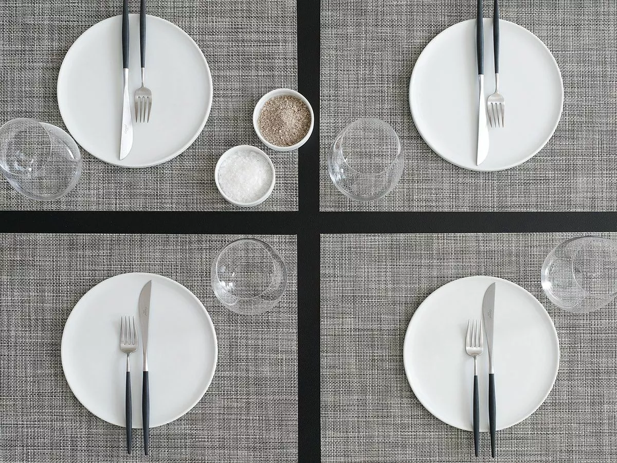 Mini Basketweave är Chilewichs signatur Basketweave på halvtid. Istället för fyra garn över fyra är Mini Basketweave två garn över två, vilket resulterar i en tystare, mindre strukturell yta. Finns i ett brett spektrum av färger, Mini Basketweave kommer att förbättra och höja varje matställe.