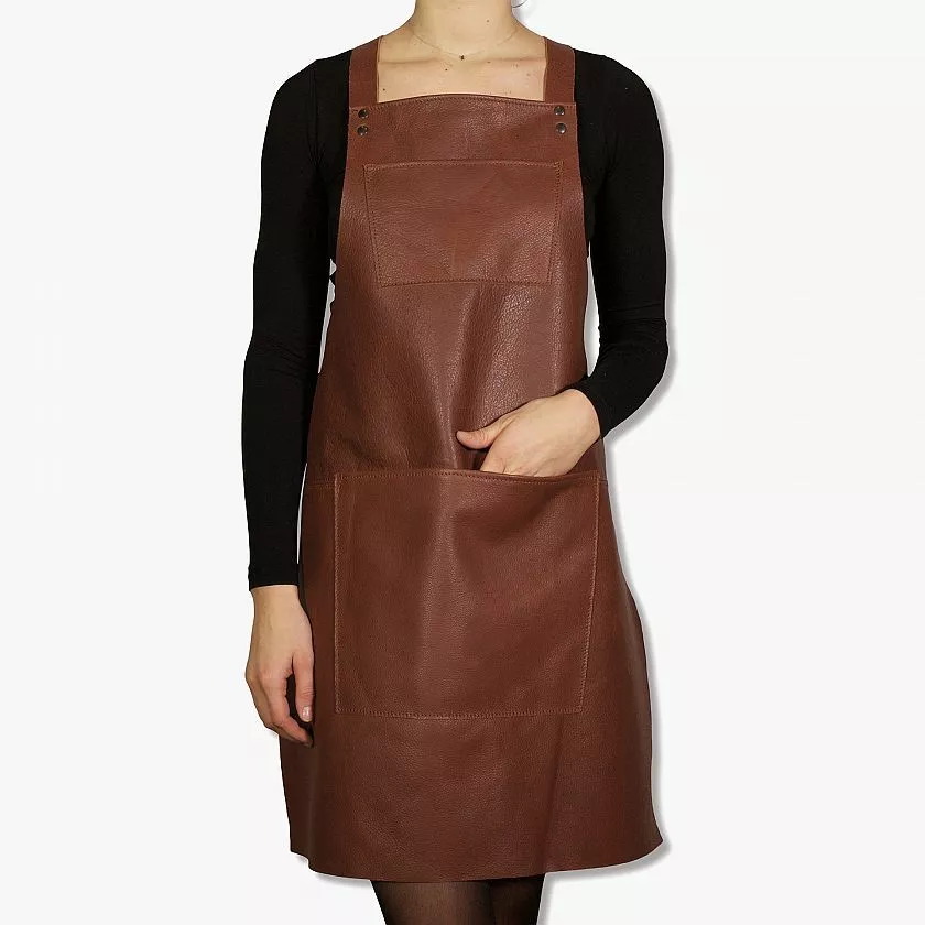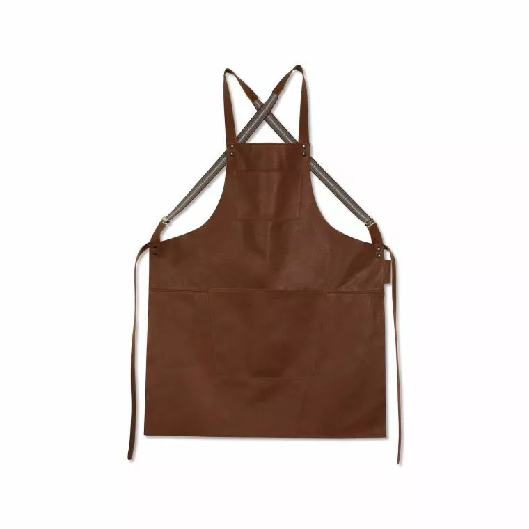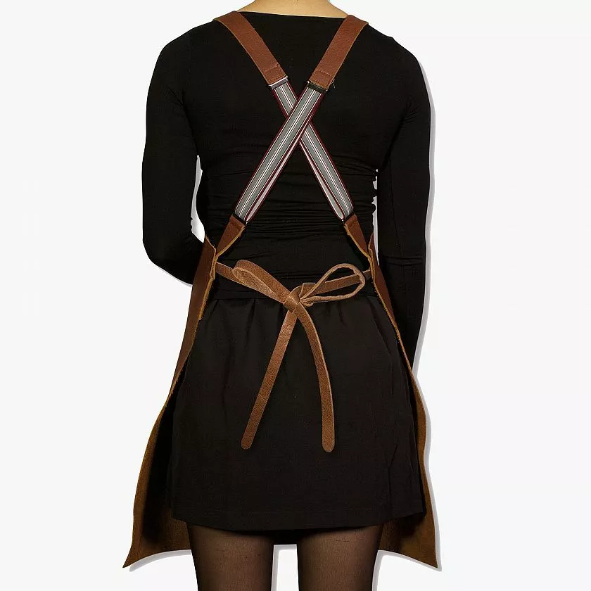 Förklädet med justerbara hängslen korsar bak och läderremmar i midjan. Vald av många gästfrihetsfolk och älskade av alla med en passion för mat och god mat. Detta förkläde är super bekvämt tack vare kombinationen av hängslen och remmar i midjan.