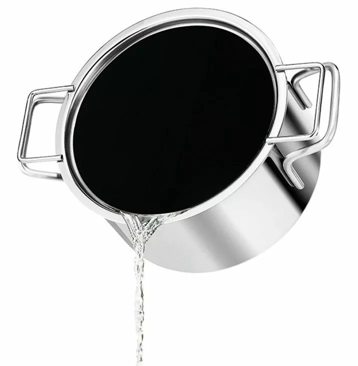 Alla lock passar alla Eva Trio-pottserier och alla material. De platta locken gör att krukorna kan staplas ihop så att de tar mindre plats under lagring. Lätt att tömma potten med vatten eller annan vätska