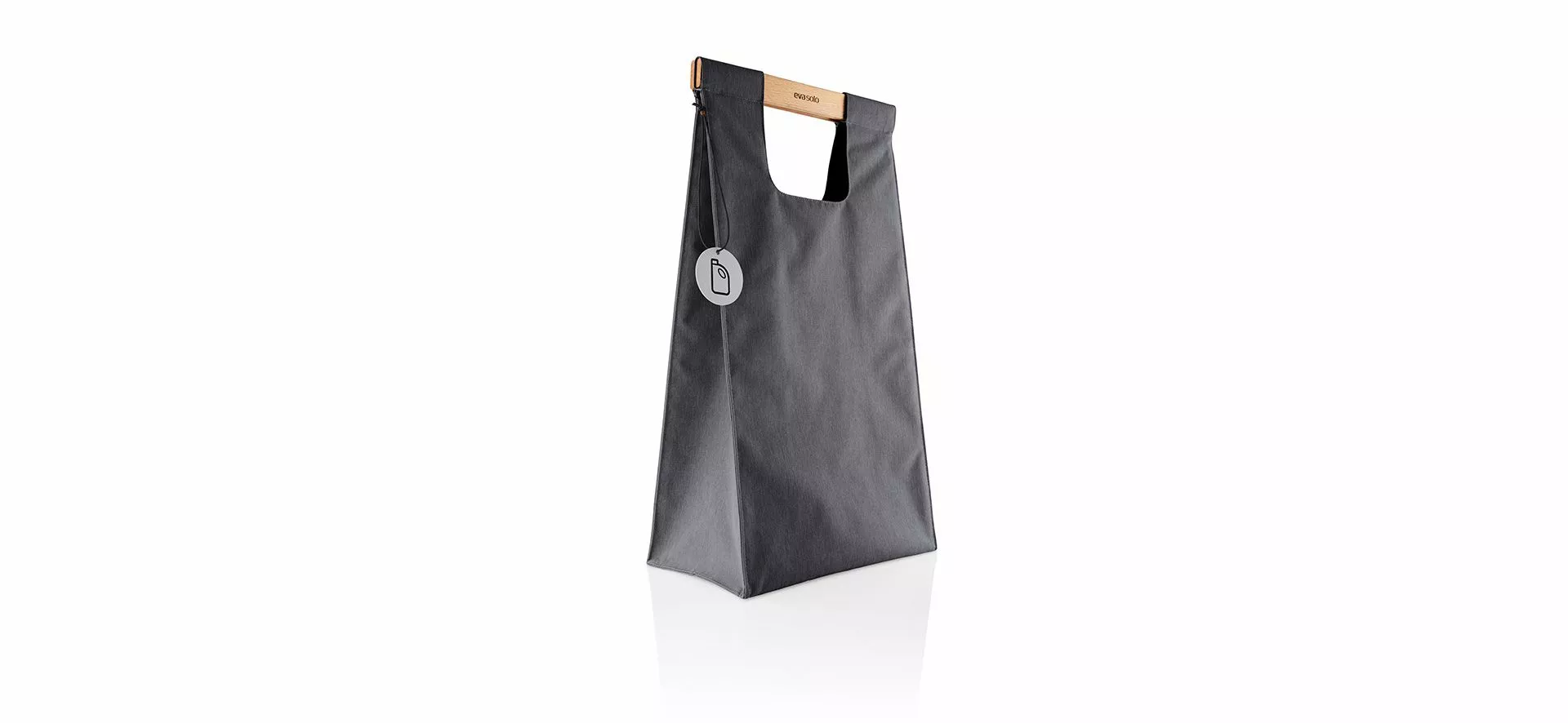 Husk å rengjøre avfallet før det legges i bagen. Praktisk nylonfôr gjør likevel bagen enkel å tørke av med oppvridd klut. Håndtaket i eik vedlikeholdes med regelmessig oljebehandling.
