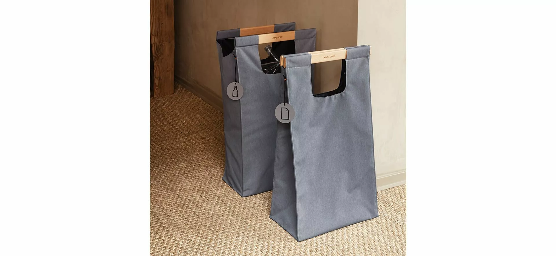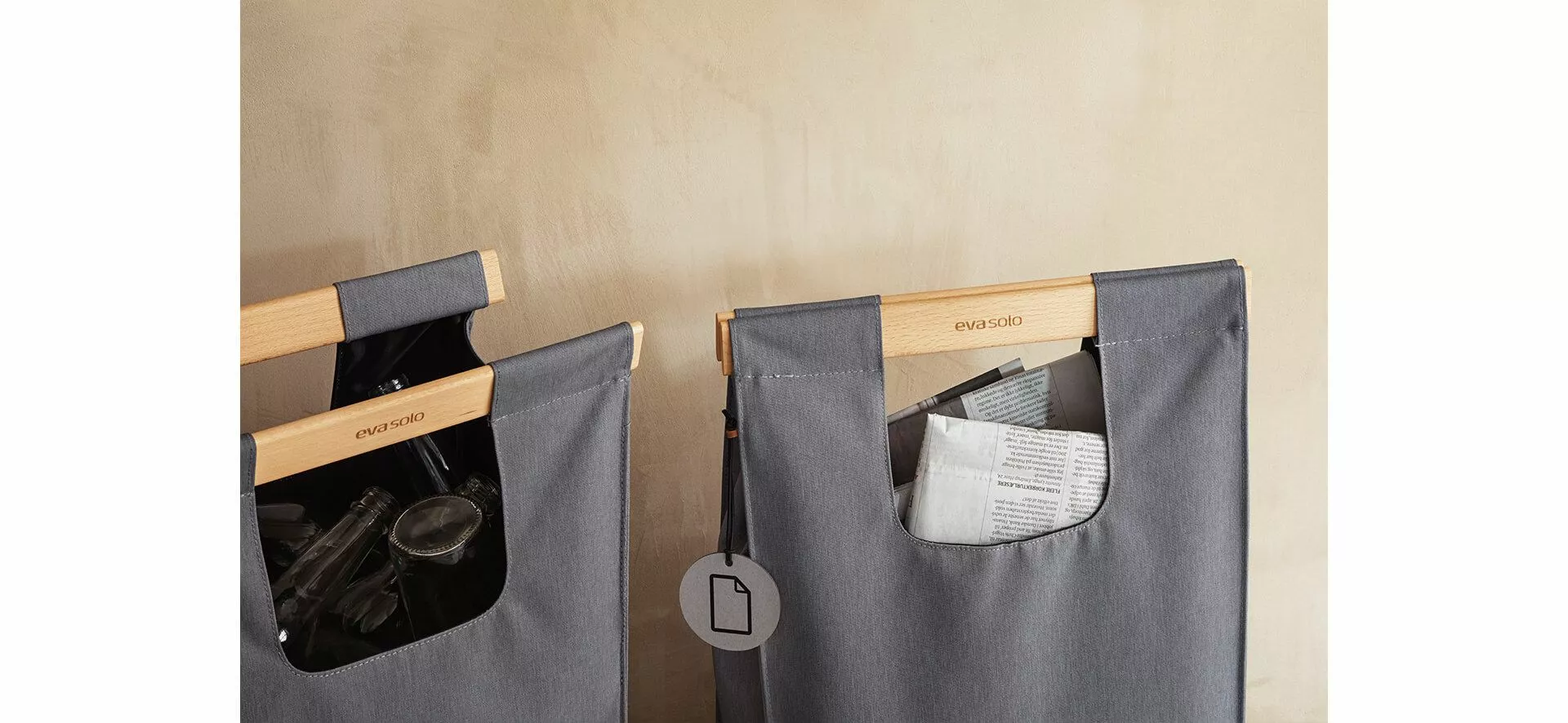 Kildesortering er bra både for miljøet og en mer ansvarlig bruk av jordens ressurser. Den praktiske, robuste og romslige kildesorteringsbagen gjør det enkelt å sortere og transportere avfallet ditt, for eksempel glass, papir, papp, plast, metall og panteflasker. Bagen er utstyrt med bærehank i eik med magnet som sikrer en effektiv lukking. 6 ikoner som gir enkel oversikt over innholdet, følger med: papp, mat- og drikkekartonger, plast, glass, papir og metall. Bagen står stabilt, og bunnen kan brettes sammen slik at bagen tar mindre plass når den ikke er i bruk.