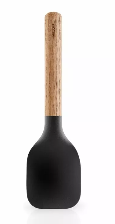 Ett mångsidigt verktyg för köket som inte bara underlättar matlagningen. Den rustika ekaxeln och den svarta silikonet fräschar upp köket. Precis som en skarp kockkniv är oumbärlig i köket, kan en bra grytesked, omrörningssked eller stekpanna också ge det lilla extra när krukorna är på spisen och du är i full gång med tillagningen.