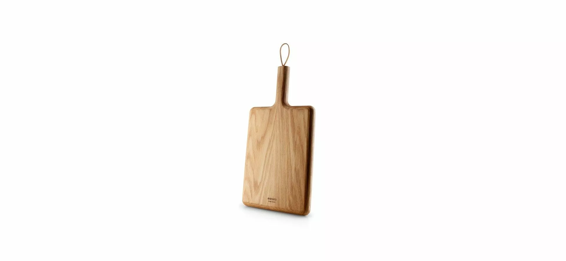 Den nordiska köksskärbrädan är rå och rustik. Den är huggen i ek, vilket ger varje bräda ett unikt utseende. Med sina rundade hörn och sidor är brädet bekvämt att arbeta med. Den kan användas för huggning och skärning av både kött och grönsaker eller för servering av t.ex. tapas. Skärbrädan kan hängas upp i läderremmen när den inte används, och det är lätt att hålla rent – använd varmt vatten och tvål. Underhåll: Behandlas regelbundet med olja.