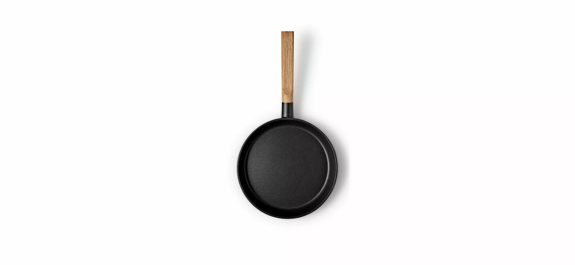 Tack vare aluminiumkonstruktionen är alla delar lätta att hantera, så om du älskar gjutjärn, men tycker att det är för tungt att arbeta med, skapas den nya potten och pannan serien Nordic Kitchen i gjutjärn från Eva Solo för dig .