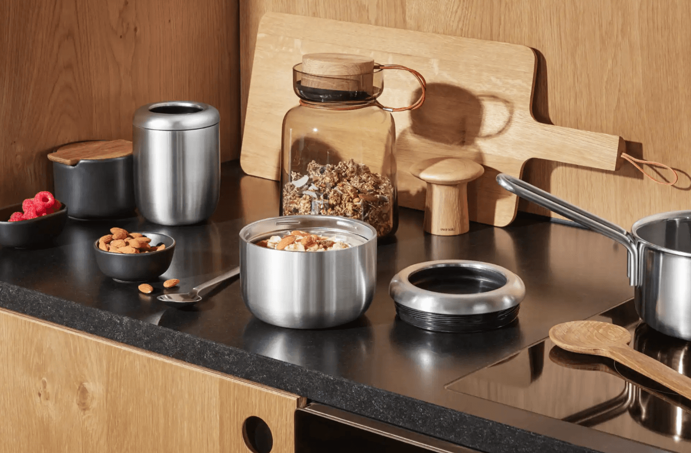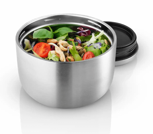 Praktisk To Go-matboks med termoskål og dobbelt lokk som holder maten varm i opptil 6 timer eller kald i opptil 12 timer