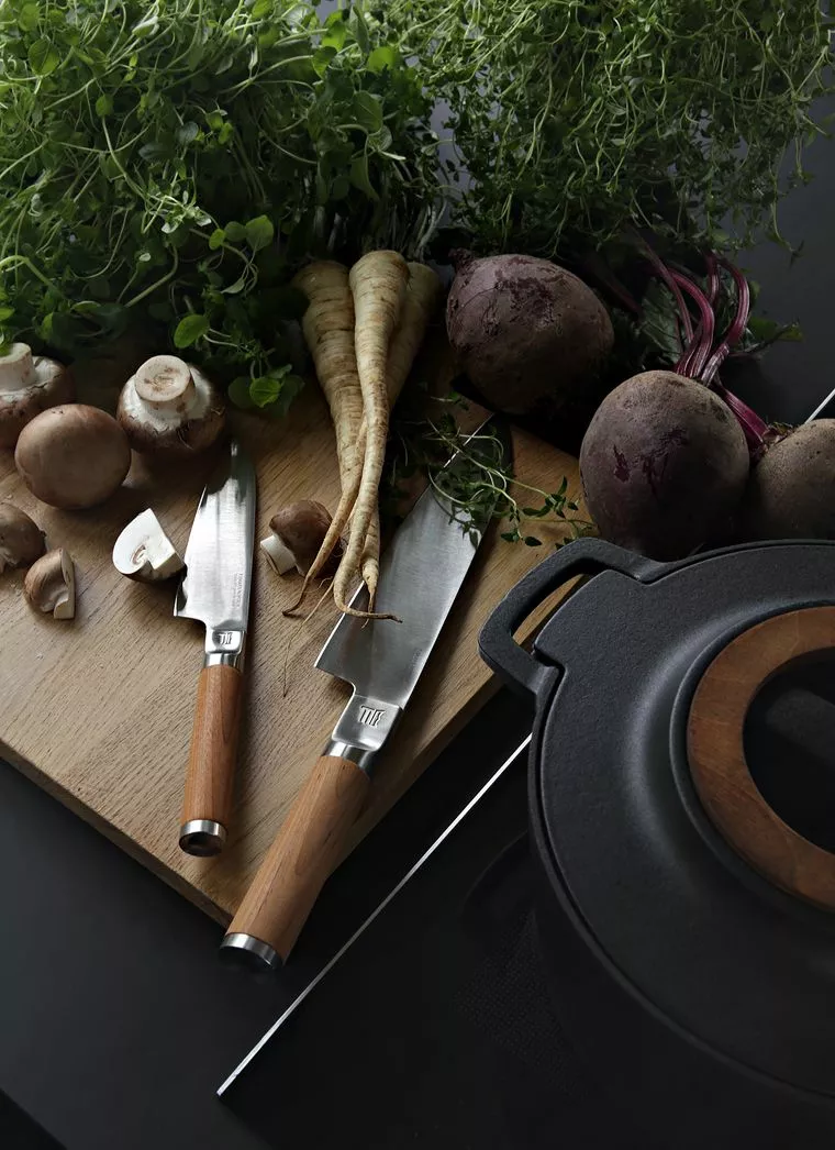 Knivarna i Fiskars Norden-serien är gjorda av de bästa materialen enligt traditionella finska hantverksmetoder. Nordens stora kockkniv är en stadig följeslagare i köket som passar de många uppgifter som matlagning erbjuder. Bladet är tillverkat av högkvalitativt tyskt stål med ett högt kolinnehåll, vilket garanterar enastående prestanda och långvarig skärpa. Bladkanten är slipad i en vinkel på 26˚, vilket är optimalt för denna typ av kniv. Knivarnas handtag är gjorda av finsk värmebehandlad björk, vilket gör knivarna både mycket bekväma att arbeta med men också estetiskt vackra. Bladets hårdhet är på HRC 56. Vi rekommenderar handtvätt de nordiska knivarna. Tillverkad i Finland.