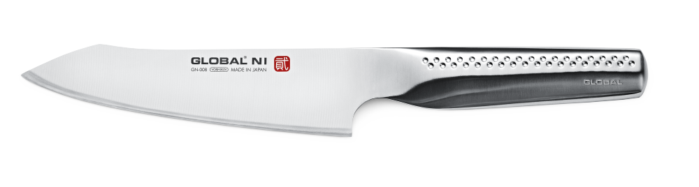 GN-008 Matlagningskniv, orientalisk, har ett 16 cm långt blad som ger dig bra kontroll över kniven och ingredienserna du jobbar med när du ska vara helt nära. Global NI-serien är tillverkad med ett starkt blad i högkvalitativt stål och med ergonomiskt korrekt grepp som uppfyller kraven från professionella kockar. Global-serien har knivar och köksredskap för alla ändamål. Det kompletta sortimentet finns här.