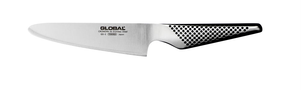 GS-2 Universal Knife är utrustad med ett kort blad, vilket gör det enkelt att komma ner till de råvaror du arbetar med. Den knivskarpa hälen gör det enkelt att få hål i t.ex. tomatskal utan att klämma. Globals fokus på ergonomi, design och optimal användbarhet gör serien populär bland både professionella och amatörkockar. Den globala serien har över 70 delar för alla ändamål. Hela sortimentet finns här.