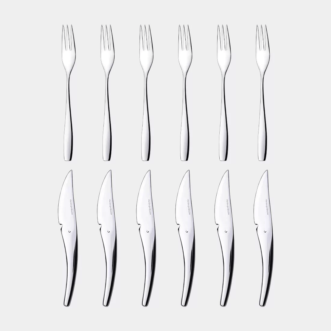 Disse flott fruktknivene fra Hardangerbestikk er designet av Per finne, pakken inneholder 6 kniver og 6 gafler.