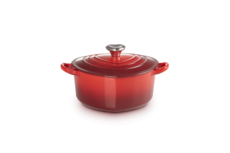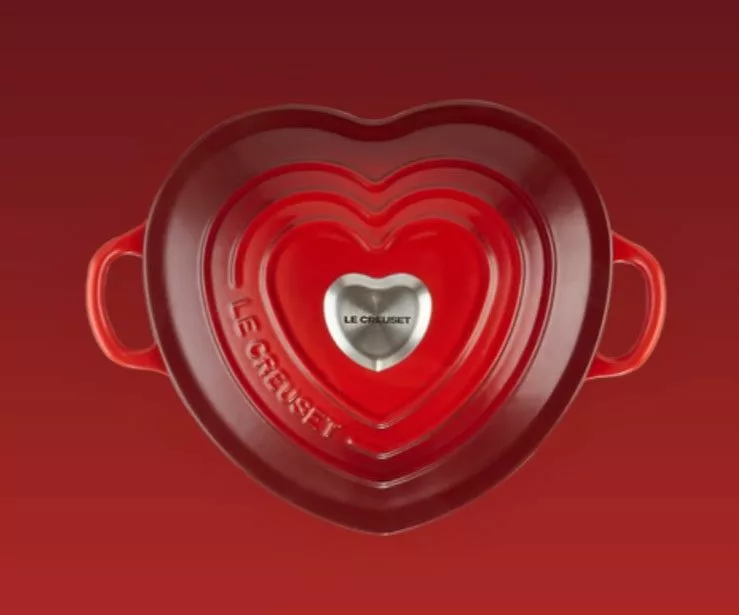 og en hjerteformet knott i rustfritt stål.