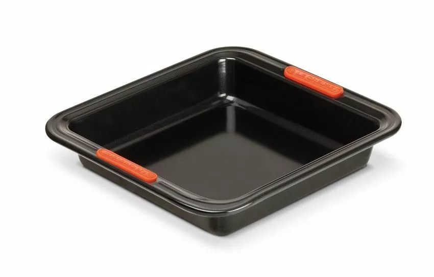 Alla bakformar från Le Creuset har värmebeständiga och halksäkra silikonhandtag som gör det enkelt att hantera burkarna. Ytan gör det enkelt att rengöra formen. Le Creusets fyrkantiga långpanna tål upp till 240 ° C i ugnen.