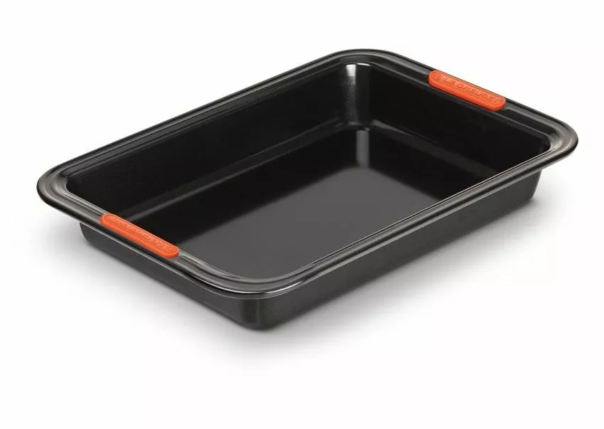 Le Creusets rektangulära långpanna är en mångsidig bakform som är oumbärlig i köket. Långpannan är perfekt för bakning av kakor och bröd samt för tillagning av kött- och grönsaksrätter i ugnen. Den släta ytan gör det överflödigt att smörja formen och säkerställer att skålen släpper ut utan problem. Formens effektiva och jämna värmefördelning motverkar matförbränningen.