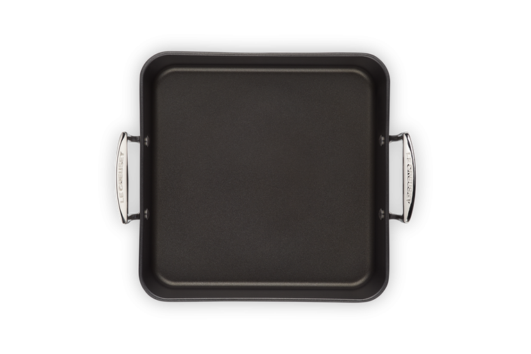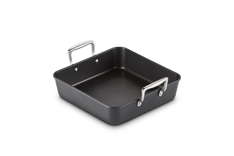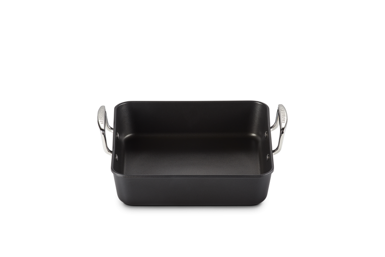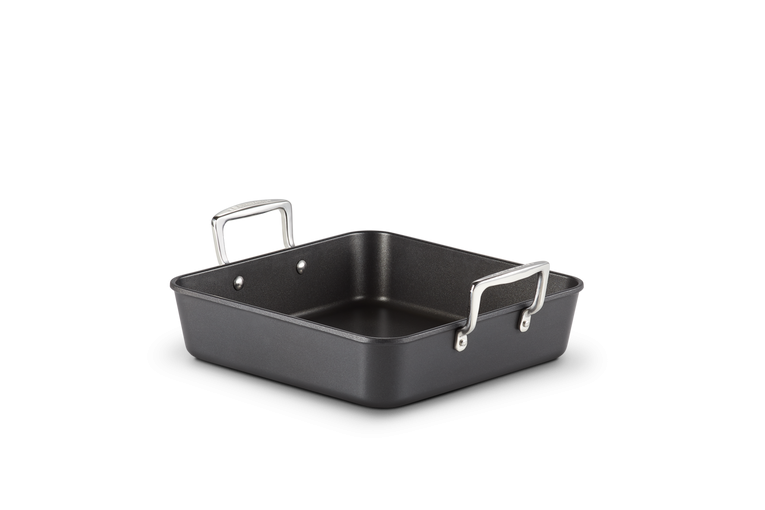 Gör läckra söndagsluncher och enkla vardagliga rätter i denna mångsidiga, fyrkantiga rostare med härdad non-stick beläggning. Den är utmärkt för stekning, bakning, poaching eller vattenbad. Den fyrkantiga formen är rymlig och de höga sidorna skyddar mot stänk. Den kan användas på alla typer av värmekällor.