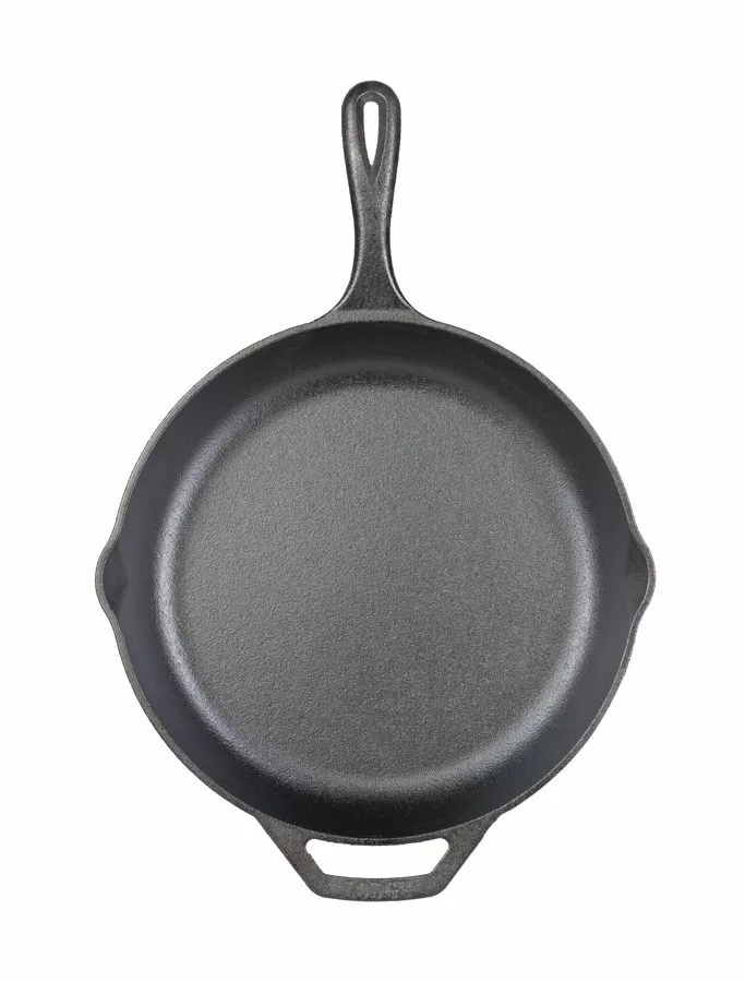 Favorithinken i gjutjärn från Lodge har designats om med kockarna i åtanke. Det förhöjda, bekväma huvudhandtaget och extrahandtaget på Chef Collection 12 Inch Skillet ger dig bra kontroll medan du manövrerar runt i köket. De generösa hällpiparna är gjorda för att steka moln och såser, och de spatelvänliga sluttande sidoväggarna gör omrörningen lätt.