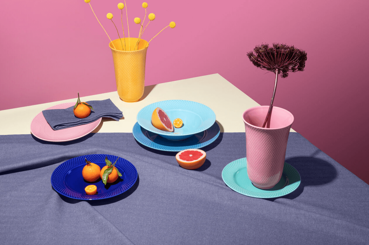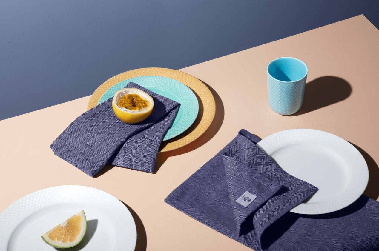 Fiskben är det ultimata klassiska mönstret, känt för sin distinkta struktur. Stram geometri uttrycks på ett organiskt sätt och därmed har vårens nya dukar flera korsreferenser till Rhombe-serien, som liksom Herringbone kommer i blåa nyanser som låter det diskreta mönstret komma fram från de mättade ytorna. Utöver de befintliga omslagsbitarna har Herringbone-serien nu även servetter i 100% ekologiskt vävd bomull, som bygger en bro mellan porslinskulturen och textiluniversumet. De nya servetterna hyllar säsongens blå- och sandfärger och kan användas till både den klassiska vita Rhombe och Rhombe Color-serien, vilket gör det möjligt att skapa en varm och personlig dukning.