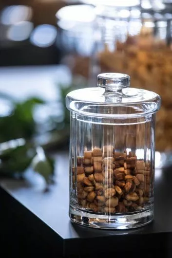 CLIFTON krukker er funksjonelle glasskrukker med lokk, formgitt av interiørdesigneren Halvor Bakke. CLIFTON drikkeglass og mugge ble lansert våren 2021. Nå kommer de tilhørende krukkene både i funklende isklar og i gyllen variant. Den varme gylne fargen kommer fra edelstenen topas som er symbol for skjønnhet og prakt.