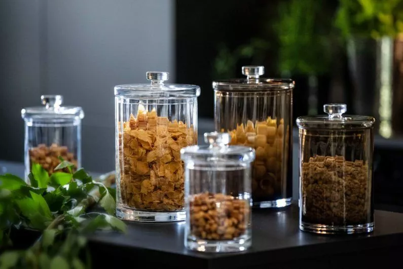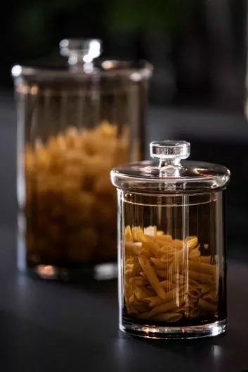 CLIFTON krukker er funksjonelle glasskrukker med lokk, formgitt av interiørdesigneren Halvor Bakke. CLIFTON drikkeglass og mugge ble lansert våren 2021. Nå kommer de tilhørende krukkene både i funklende isklar og i gyllen variant. Den varme gylne fargen kommer fra edelstenen topas som er symbol for skjønnhet og prakt.