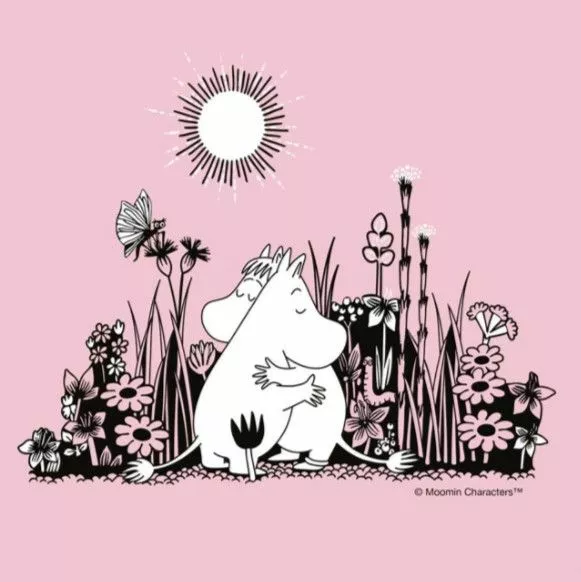 Mummi serviett med klem motiv. Servietten har motiv av Mummitrollet og Snorkfrøken og kommer i pakke på 20 servietter.