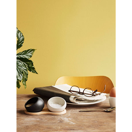 Täck över middagen med den fina salt- och pepparkakan från Rosendahl. De två kärlen är gjorda av porslin och är glasade med vit respektive svart glasyr, som är blank insida och matt utsida. De två små karna levereras med en hållare gjord av obehandlad europeisk ek. Den enkla designen med de runda formerna och kombinationen av porslin och obehandlat trä ger uppsättningen ett enkelt skandinaviskt utseende som passar in i dagens bostadstrender. Placera uppsättningen på det dukade bordet och låt middagsgästerna förse sig med smaksättningskryddorna. Stor presentidé för många tillfällen.