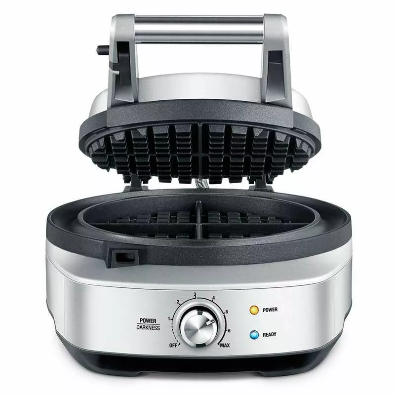 Här har du ett färdigt våffeljärn som fångar överflödig deg och ger en jämn bakning
