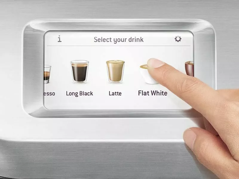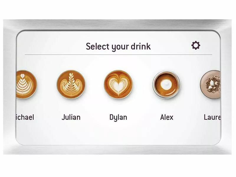 Pekskärmen, automatiserad teknik, låter dig välja mellan klassiker som latte, espresso, americano, plattvit och cappuccino.