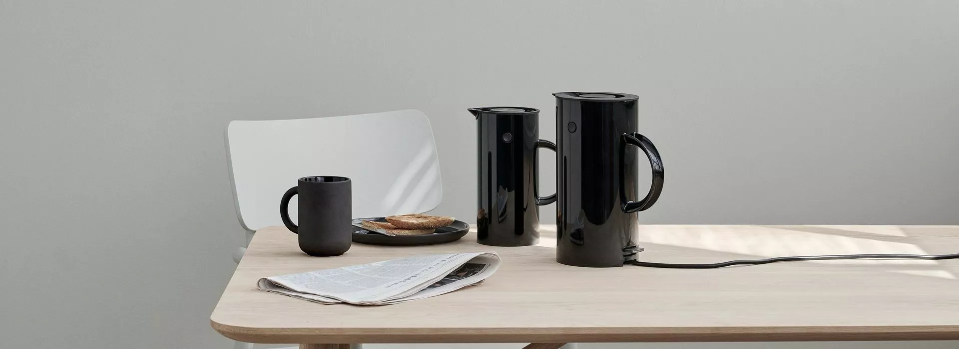 Erik Magnussens klassiska termokanna EM77 har prydt soffbord runt om i världen i över 40 år och nu introduceras en helt ny medlem i EM-familjen: EM77-vattenkokaren, som ger köket ett snyggt utseende och kompletterar funktionellt EM77 kolvkanna Och EM77 tekokare. EM77-vattenkokaren har hög prestanda, vilket innebär att vattnet kokar snabbt med ett minimum av energiförbrukning.