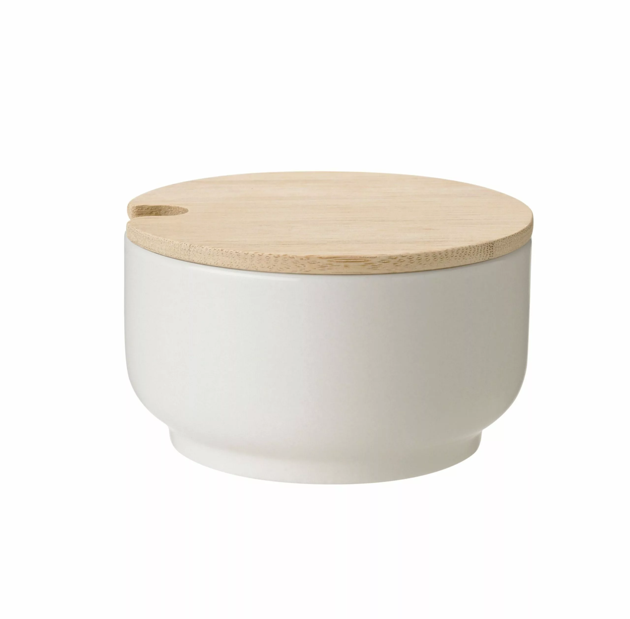 Sockerskålen från Theo-serien är lugnande för ögat och sinnet och skapas med sina vackra kontraster för att väcka sinnena. Sockerskålen är designad i matt sandfärgat stengods med en blank, invändig glasning som gör den både rustik och elegant. Skålen levereras med ett bambulock, med plats för en sked som skyddar sockret. Kombinera sockerskålen med de andra delarna från Theo-serien i din bordsdekoration.