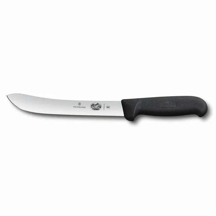 En spesiell slaktekniv fra Victorinox har et stivt og tykt 15 cm blad med en bred og buet spiss, som gjør den svært godt egnet til både slakting og partering.