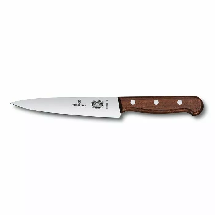 Den 15 cm lange kokkekniven fra Victorinox er laget av rustfritt stål og har et treskaft. Knivbladet er tynt og skarpt, slik at du kan skjære grønnsaker, frukt og kjøtt i jevne stykker og tynne skiver etter ønske. Skaftet har en ergonomisk form og er polert for hånd, for å gi et optimalt grep når du bruker kniven.