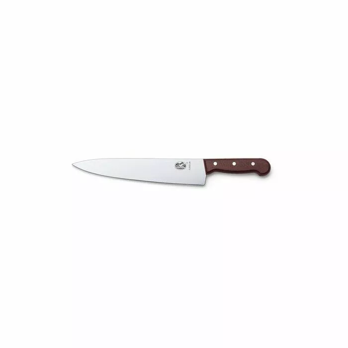 Denne 28 cm lange kokkekniven fra Victorinox er laget av rustfritt stål og har et treskaft. Knivbladet er tynt og skarpt, slik at du kan skjære grønnsaker, frukt og kjøtt i jevne stykker og tynne skiver etter ønske. Skaftet er formet ergonomisk og er håndpolert for å gi en optimalt grep når du bruker kniven.