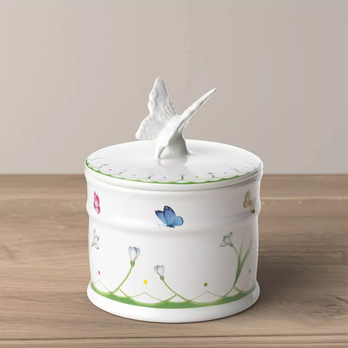 Snøklokker er de første budbærerne av våren. Velkommen våren inn i hjemmet ditt med de delikate blomstene og fargerike sommerfuglene fra Colourful Spring-kolleksjonen. Den lille krukken med en sommerfuglfigur fra Colourful Spring er akkurat det du trenger for å oppbevare kjeks, godteri og mer. Takket være silikonringen lukker krukken perfekt og innholdet holder seg friskt lenger. La hjemmet ditt blomstre.