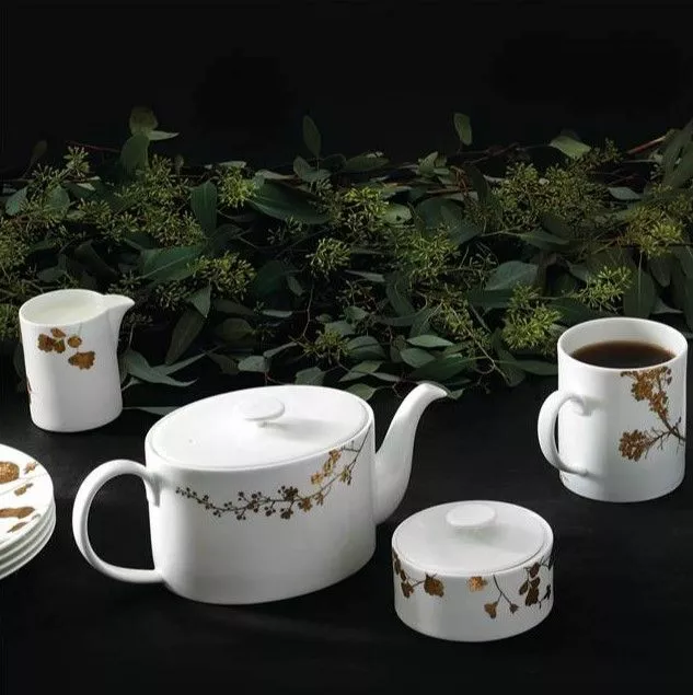 Vera Wang Jardin Beverage Set ville göra en vacker gåva, inspirerad av Veras kärlek till konst och hennes egna personliga illustrationer. Denna uppsättning består av en tekanna, grädde och täckt sockerskål och har glänsande guld- och bronsblommor på en ren vit bakgrund. Presenteras i en snygg Vera Wang Wedgwood presentförpackning