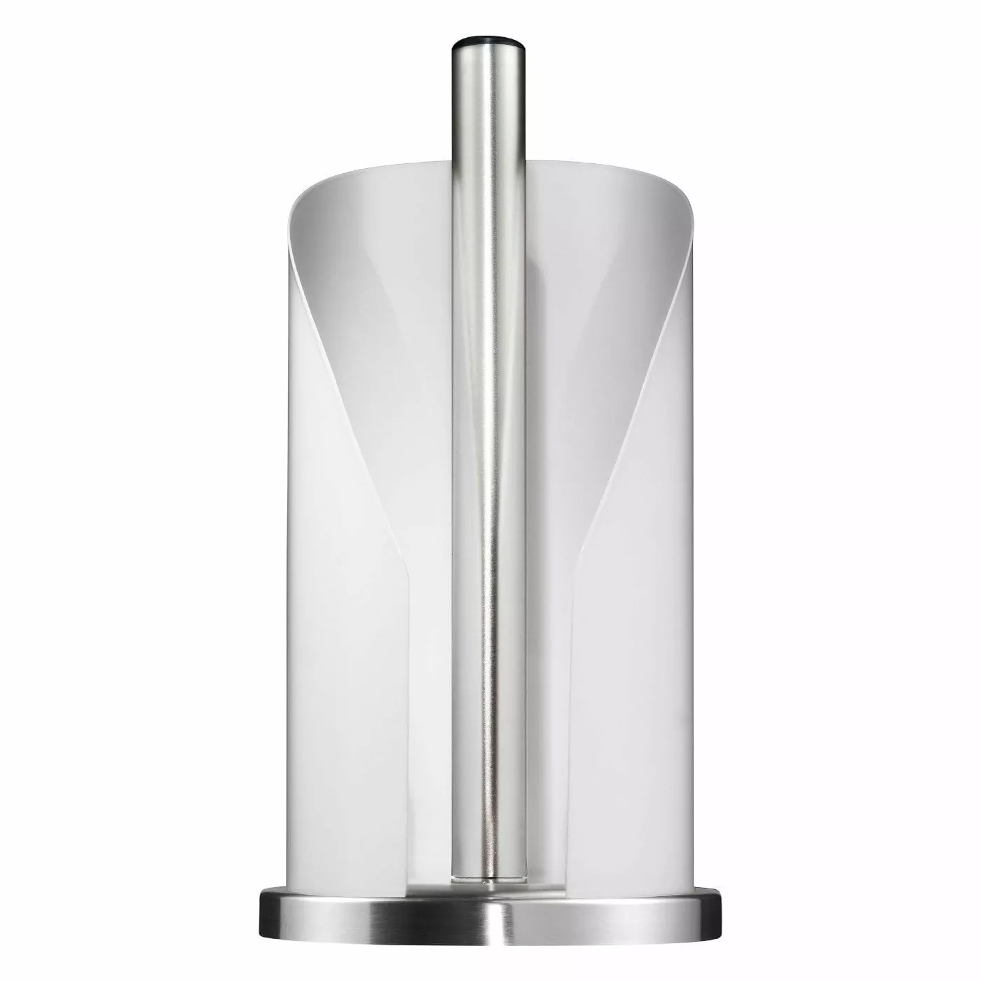 Superstabilt kök och toalettpappershållare i den typiska Wesco-materialkombinationen: rostfritt stål och pulverlackerat stålplåt. Lämplig för vanliga köksrullar eller toalettpappersrullar. Ej lämplig för diskmaskin.
