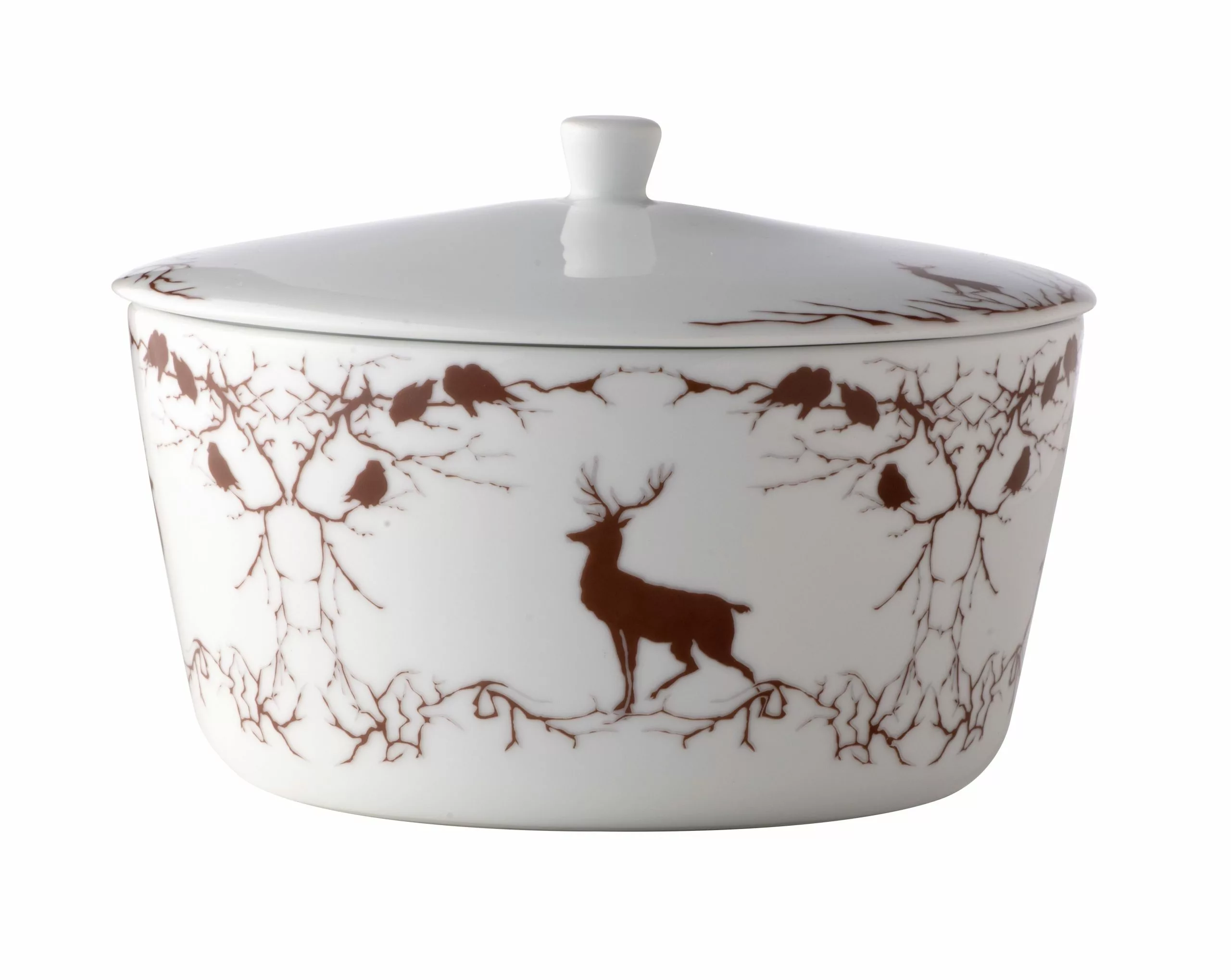 Den majestätiska hjorten pryder denna populära porslin. De rådjur har spelat en viktig roll i mytologin genom åren; deras skönhet och kraft är fascinerande, magiska och mogna.