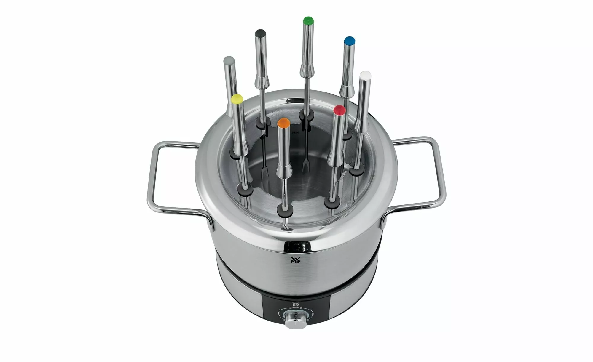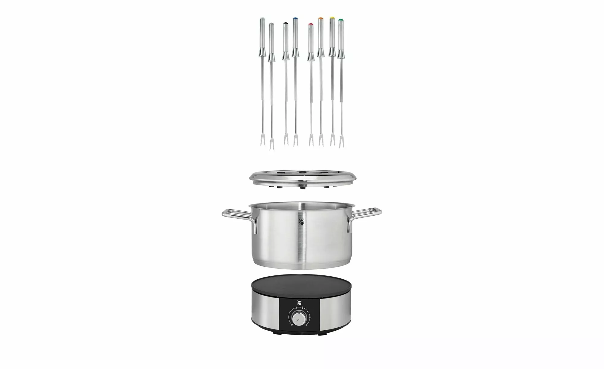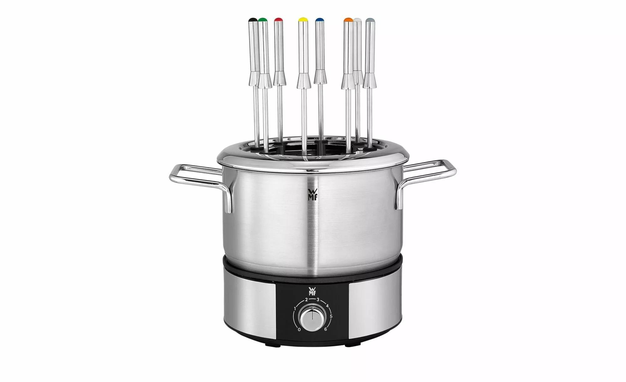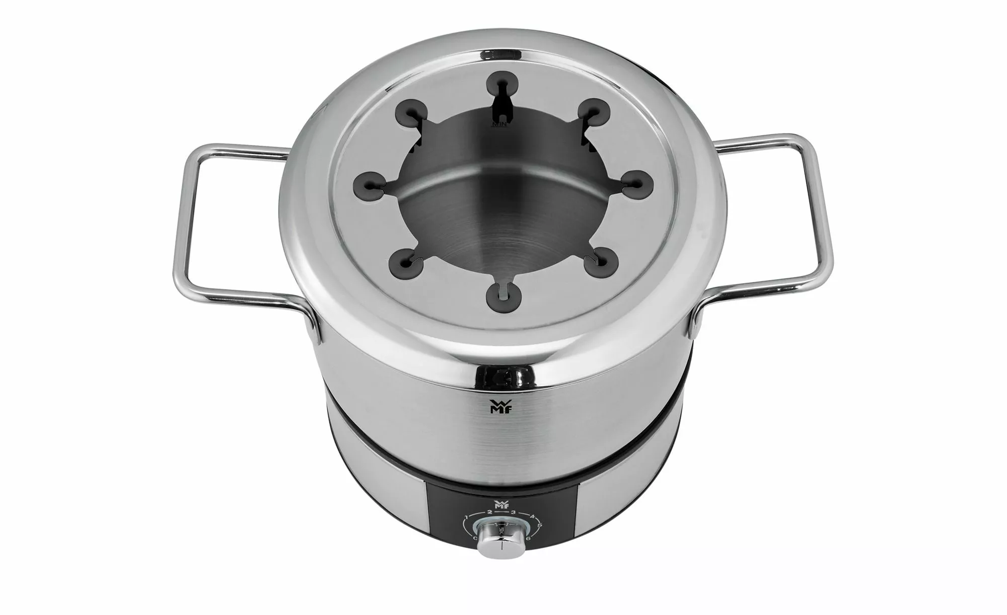 Cromargan® fonduekruka med 1,5 l kapacitet, hållare för individuella fonduegafflar; Variabel temperaturinställning, LED-klar indikator, På / av-omkopplare, 1400 Watt