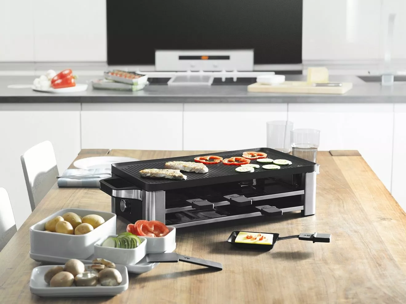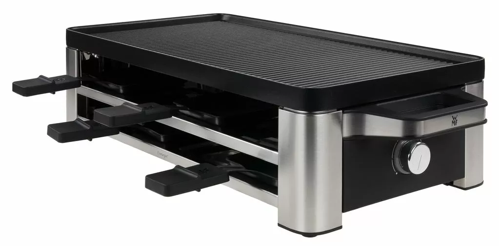 Specialfunktioner Inbyggt tillbehörsförvaring, justerbar termostat, vändbara hällar