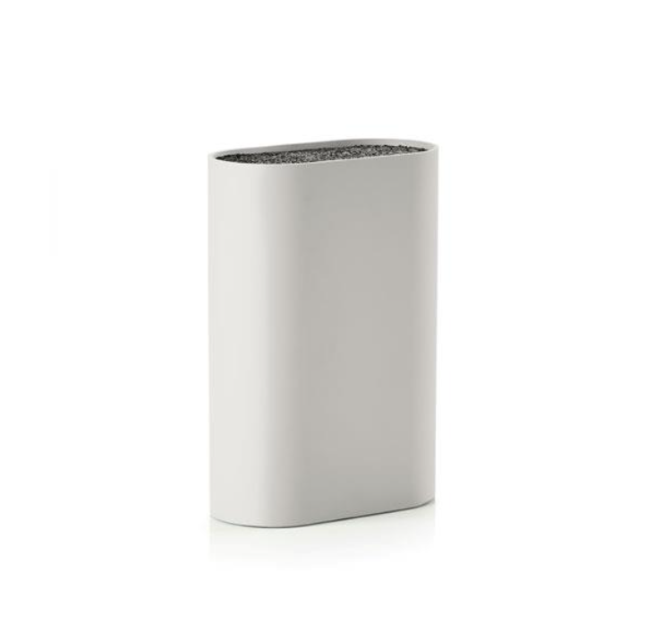 Med Zones flotte knivblokk Singles i stram og enkel design får du plass til alle typer kniver. Innsatsen består av mange hunder tynne plaststrå, slik at du kan plassere knivene på kryss og tvers. 9 x 17 cm, høyde 24 cm.